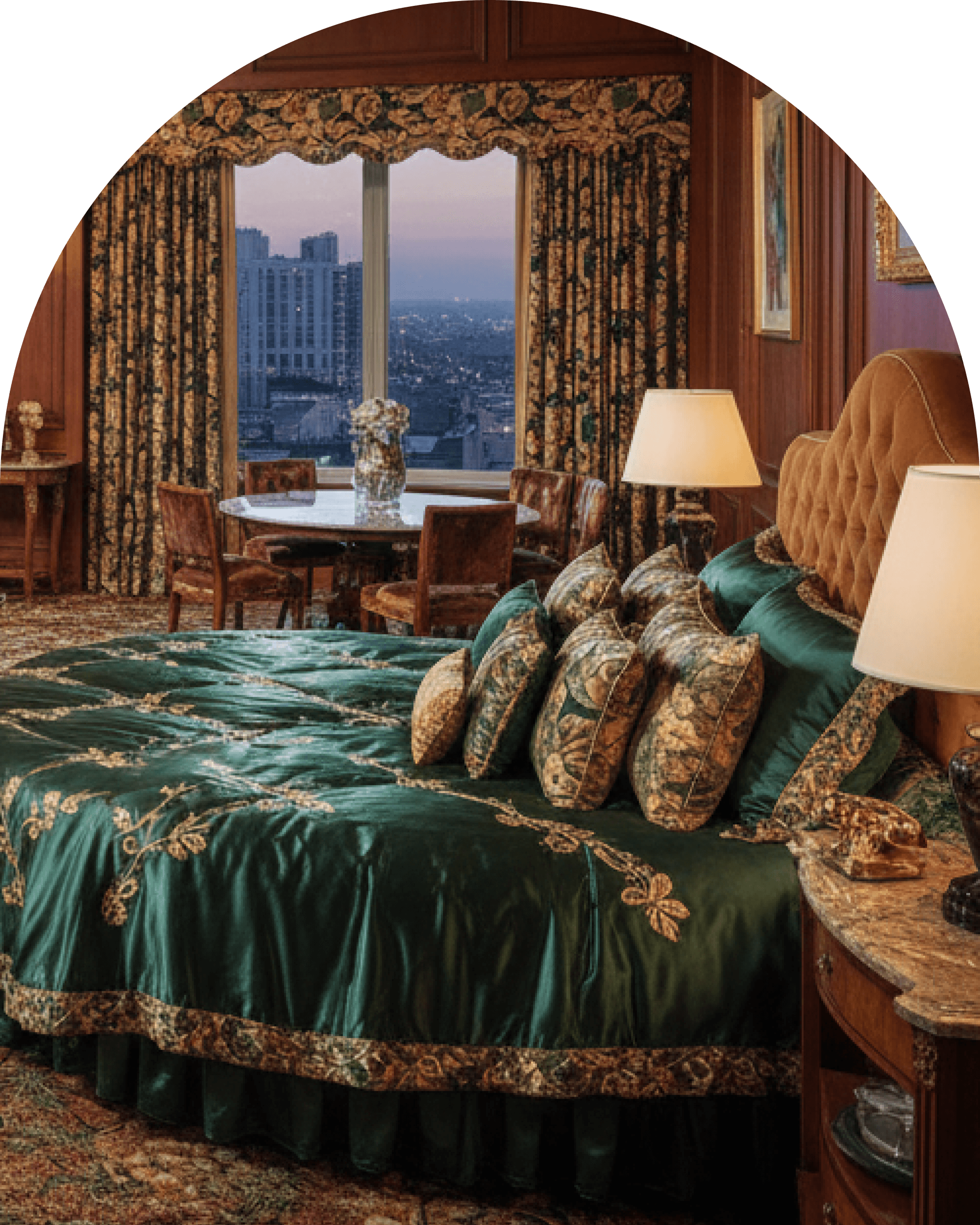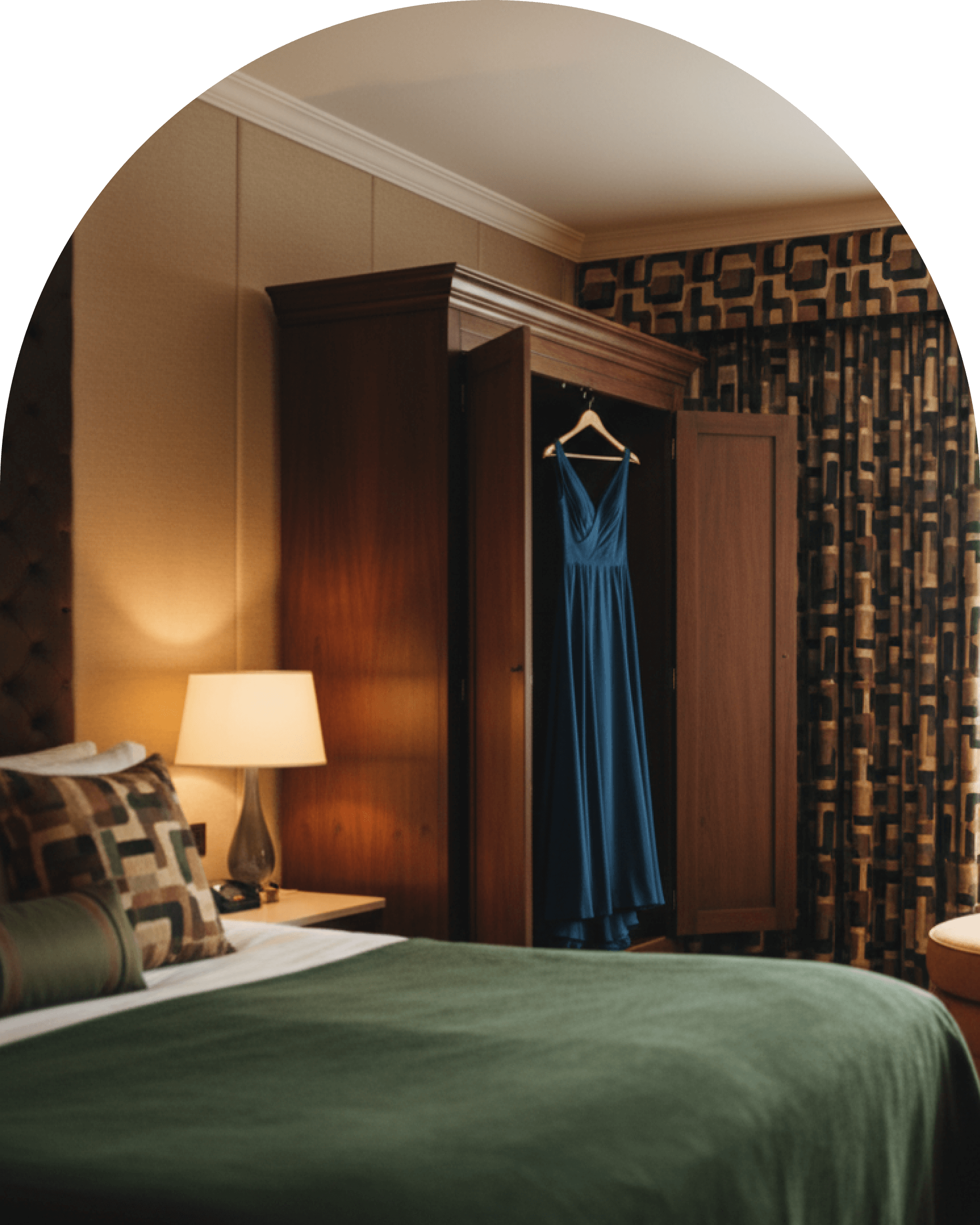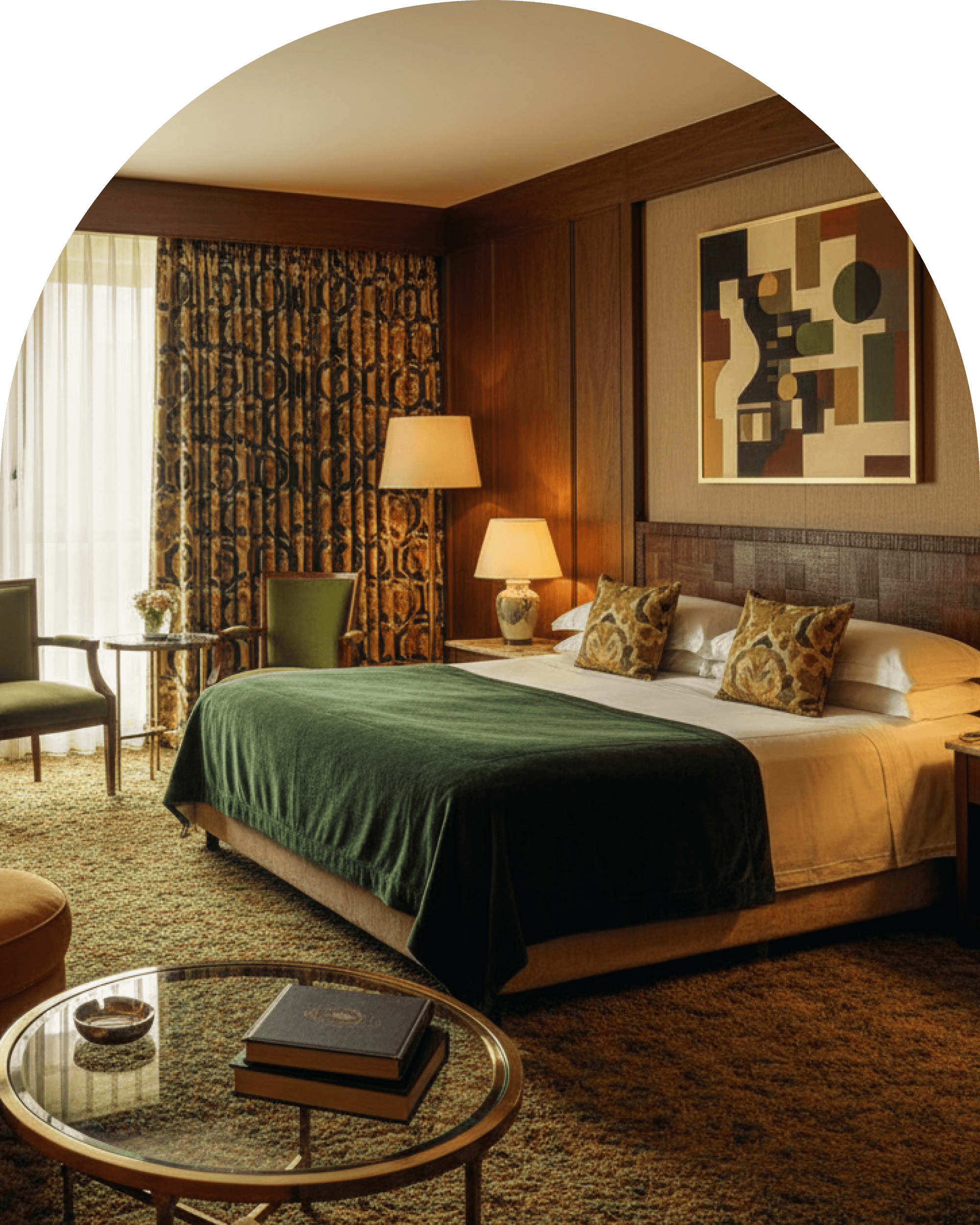 A quiet layout with warm lighting and vintage furnishings. Guests often ask about melodies heard from within the walls at night. But we assure you, everything will be sorted out by morning.